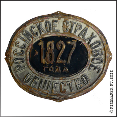 Фасадная доска «Первое Российское страховое общество. 1827». Жесть, штамп 220 х 270 мм. Между 1898–1918 гг. Внизу надпись о фирме-изготовителе: «Т-во «Жесть» Ревель». Из коллекции В.Н. Борзых
