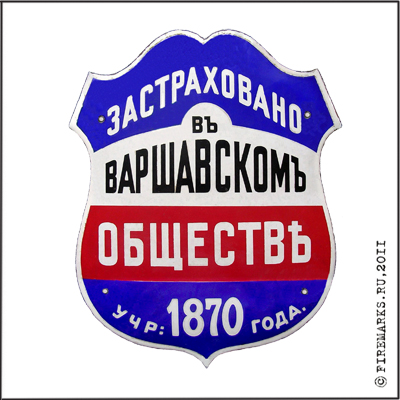 Фасадная доска «Застраховано в Варшавском обществе учр: 1870 года». Сталь, эмаль, 29,5 х 24 см. Начало XX в.