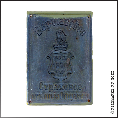 Фасадная доска «Варшавское страховое от огня общество учрежд. 1870 года». Жесть, 260х190 мм. Конец XIXв.